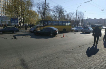 Перед мостом на проспекті Перемоги у Луцьку зіткнулися три автомобілі.