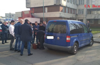 Працівники департаменту внутрішньої безпеки Нацполіції обшукують автомобіль поблизу луцького РАЦСу