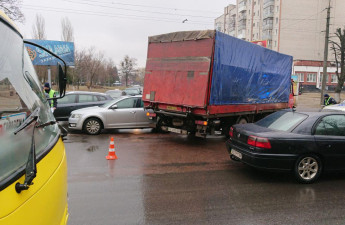 На перехресті вулиці Писаревського та проспекту Відродження зіткнулися легковик Skoda та вантажівка Mercedes