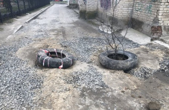 Легковик передніми колесами провалився в нещодавно засипану яму. Інцидент трапився на вулиці Федорова у Луцьку