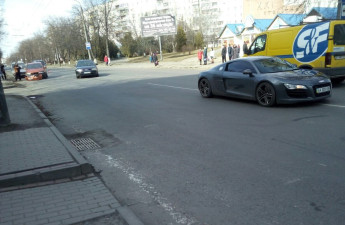 Спортивний автомобіль Audi R8 став учасником аварії в Луцьку. В результаті невдалого маневру відбулось зіткнення з автомобілем однієї зі служб таксі.