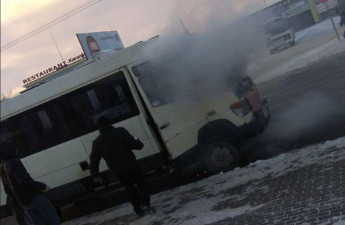 Загоряння маршрутного автобусу № 441 Луцьк-Ратнів сталося близько 15 години на автостанції №2 в Луцьку