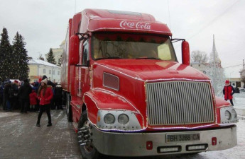 На Театральному майдані Луцька уже стоїть святкова вантажівка «Coca-Cola». Щойно машина щойно приїхала – біля неї зібралося уже більше сотні людей