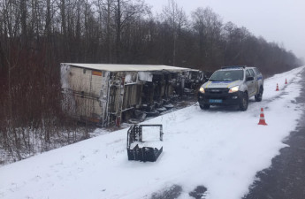 На Волині вантажівка злетіла у кювет та перекинулася