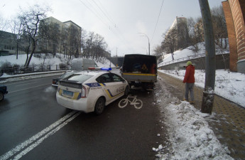 У Києві автомобіль патрульних, наздоганяючи позашляховик, в'їхав у вантажівку