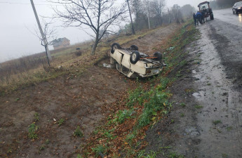 У Луцькому районі – ДТП: автомобілі в кюветі, один перекинувся