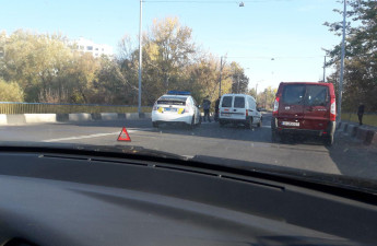 У результаті зіткнення мікроавтобуса та вантажівки з причепом повністю заблокований рух вулицею Кравчука.