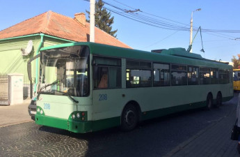 Тролейбус, у якого зламалася штанга, заблокував рух транспорту на вулиці Богдана Хмельницького в Луцьку.