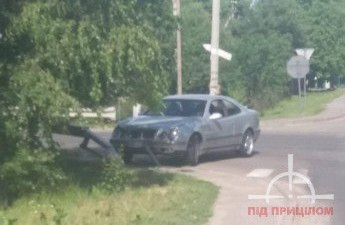 У Луцьку на вулиці Окружній автомобіль Mercedes врізався у металевий відбійник