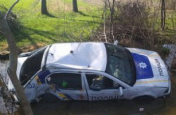У селі Гать Берегівського району Закарпаття поліцейські втопили в болоті службовий автомобіль Skoda Octavia