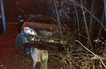 Автомобіль «Мерседес» S-класу мешканця Бердянська (Запорізька область) під час спуску з мосту в Луцьку вилетів на бетонну загорожу, зруйнувавши її, і мало не злетів униз