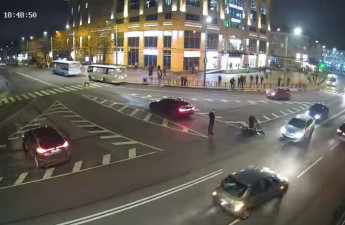 Зіткнення BMW та мотоцикла у центрі Луцька: камери зафіксували момент ДТП