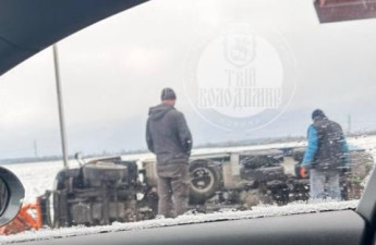 На Волині вантажівка, яка посипає дороги, перекинулася в кювет