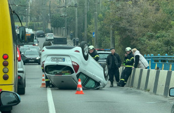 Автівка перекинулася на дах: у Луцьку на мосту сталася ДТП