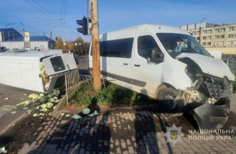 У Луцьку на перехресті зіткнулися два буси, один від удару перекинувся на бік