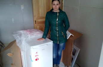 Дружині загиблого бійця роти поліції особливого призначення «Світязь» УМВС України у Волинській області Максима Ляшука Ользі напередодні Великодніх свят вручили морозильну камеру