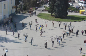 Луцькі велосипедисти під час благодійного велопробігу сформували символічне «серце».