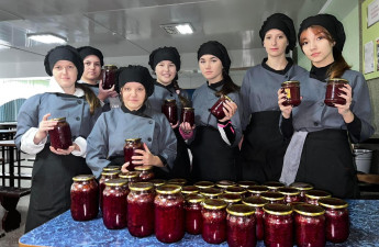Заклад отримав чергове замовлення з фронту – на борщову заправку. Тож у кулінарному тандемі з наставниками майбутні кухарі приготували пів сотні банок готової овочевої суміші.