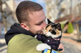 Помічниця волонтера: у Луцьку військовий разом з кицькою збирає гроші для ЗСУ