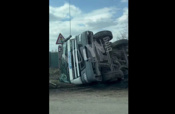 Водій вантажівки не впорався з керуванням, внаслідок чого транспортний засіб перекинувся.