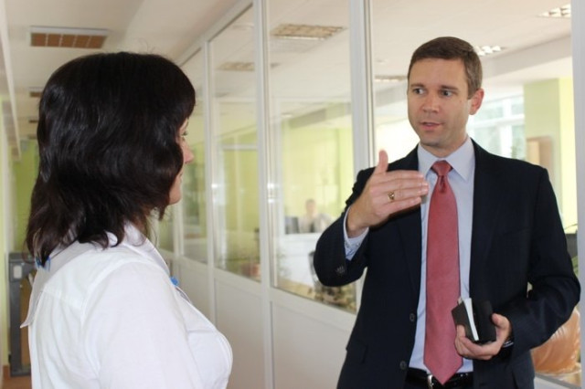 Грегорі Пфлегер переглянув на екрані інформаційного терміналу адміністративні послуги, які надаються у відомстві. Особливо зацікавився принципом прийому громадян, а також набором штату працівників.