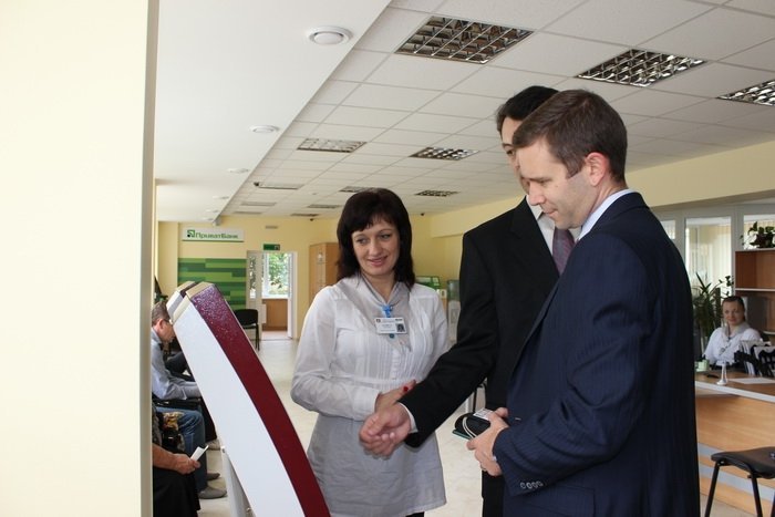 Грегорі Пфлегер переглянув на екрані інформаційного терміналу адміністративні послуги, які надаються у відомстві. Особливо зацікавився принципом прийому громадян, а також набором штату працівників.