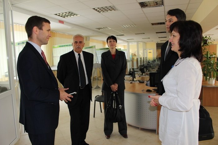 Американський дипломат разом із першим заступником міського голови Святославом Кравчуком та директором департаменту «Центр надання адміністративних послуг у Луцьку» Ларисою Карп’як оглянули приміщення ЦНАПу.