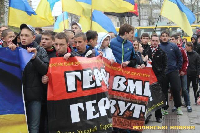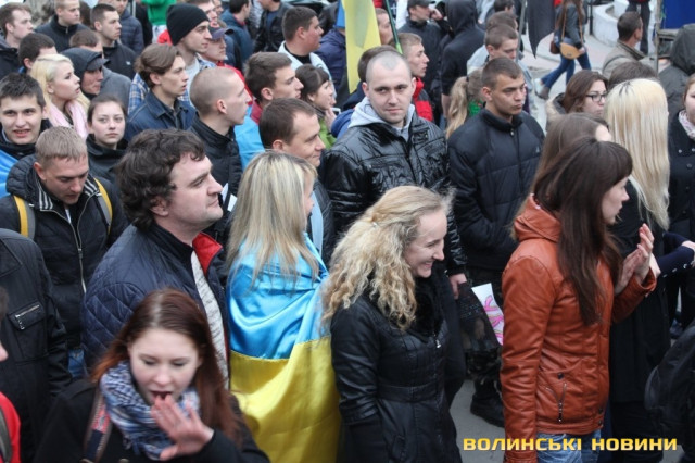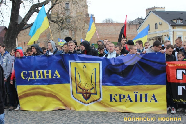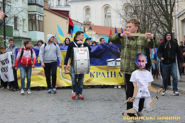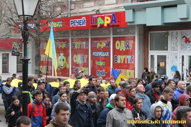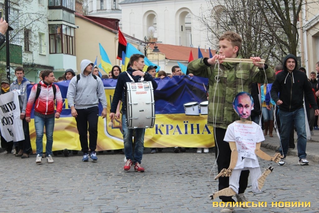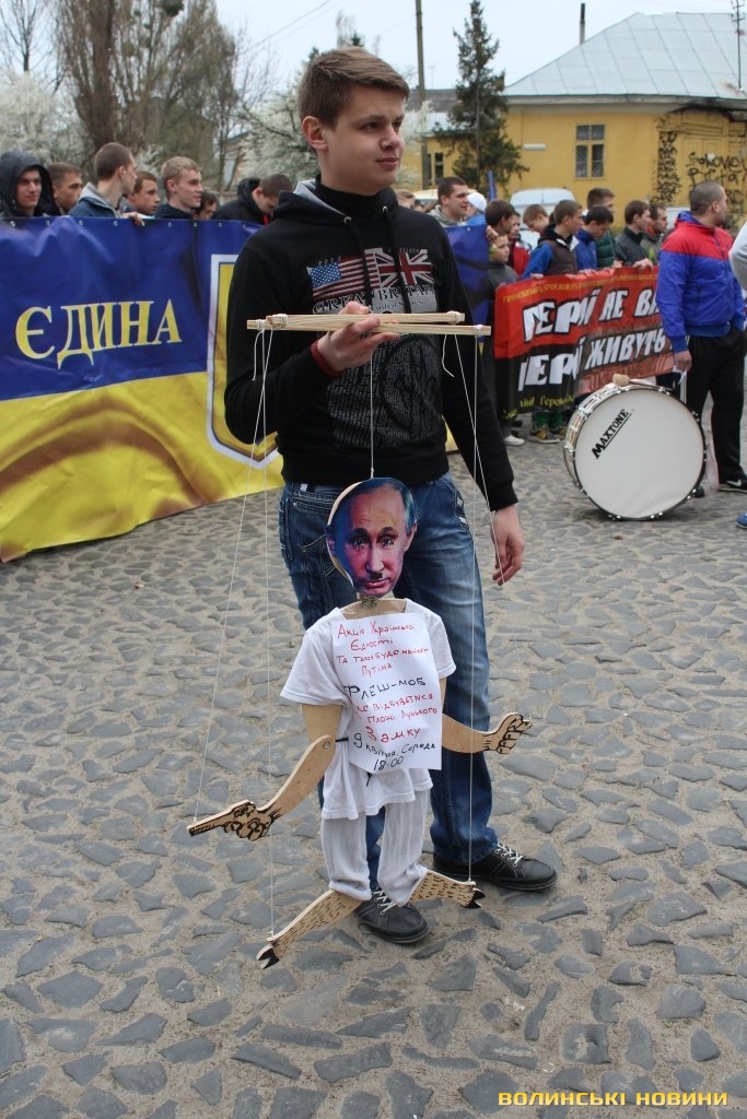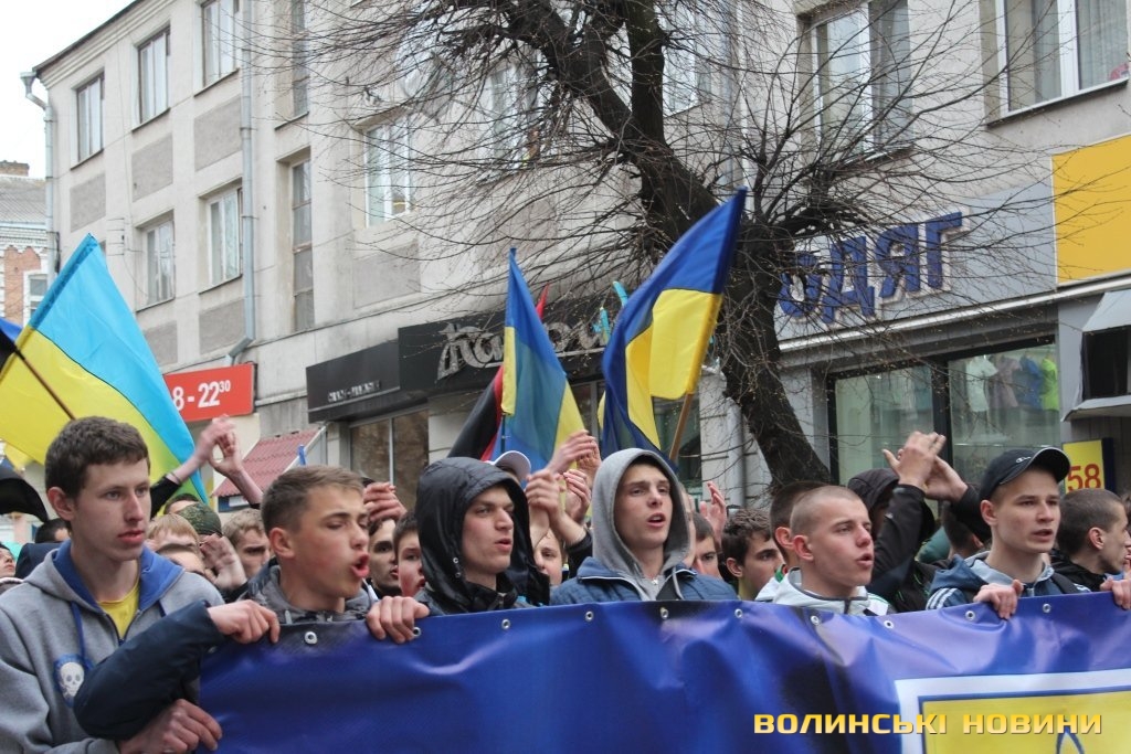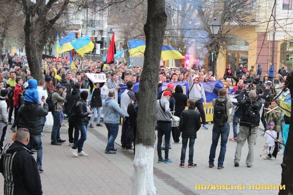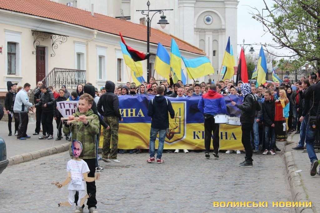 Під гаслами «Схід і захід разом» та «Путін – х..ло» сотні лучан пройшли ходою центром міста.