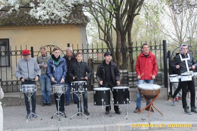 Учасники акції підтримки Сходу України зібралися на Замковій площі, що у Старому місті. Після нетривалої репетиції вони колонною під барабанний бій та з банерами та прапорами пройшли вулицями Данила Братковського та Лесі Українки до Театрального майдану.
