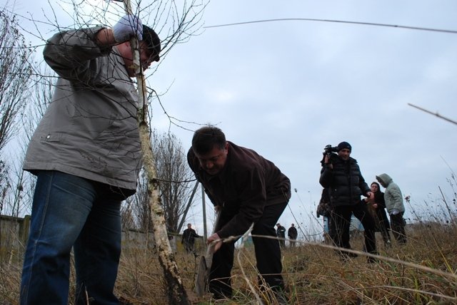 На посадку дерев зібрали працівників виконавчих органів міськради та кількох комунальних підприємств. Усе за протоколом: інструктаж керівника заходу – заступника міського голови, начальника відділу екології Бориса Сороки, вітальне слово міського голови Богдана Шиби. Роздача лопат і саджанців.