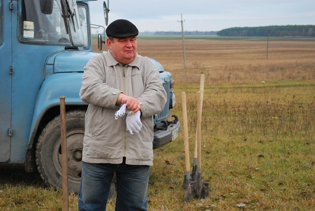 Першим на вантажівку з саджанцями накинувся депутат міської ради Микола Нікітюк