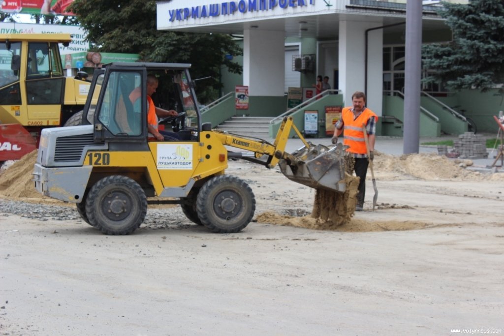 Реконструкцію Привокзального майдану у Луцьку завершать до Дня Незалежності. Щоправда, за умови сприятливої погоди, - додають у мерії.