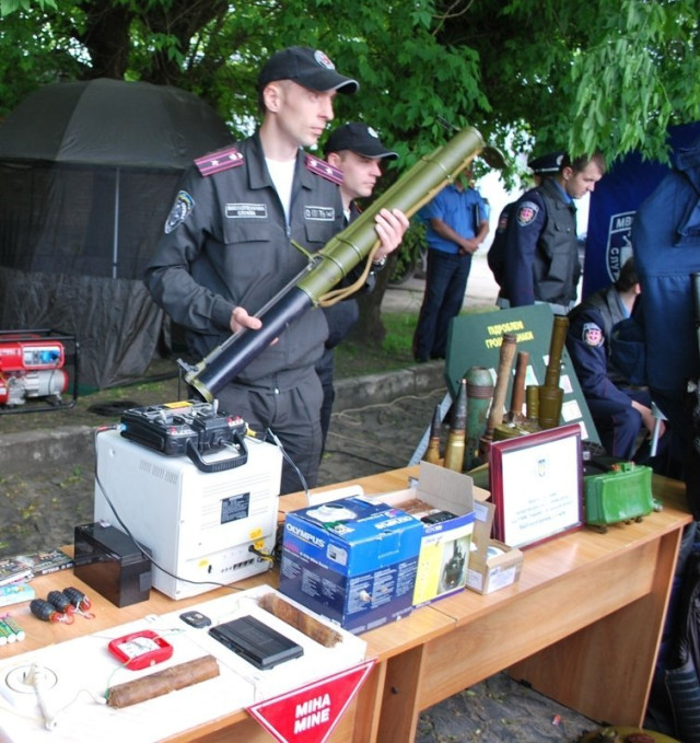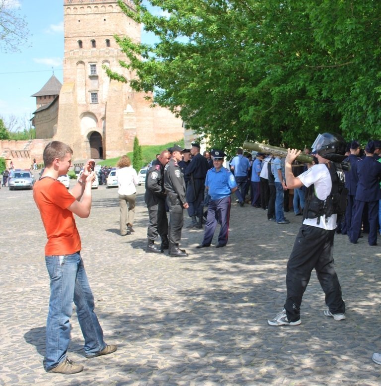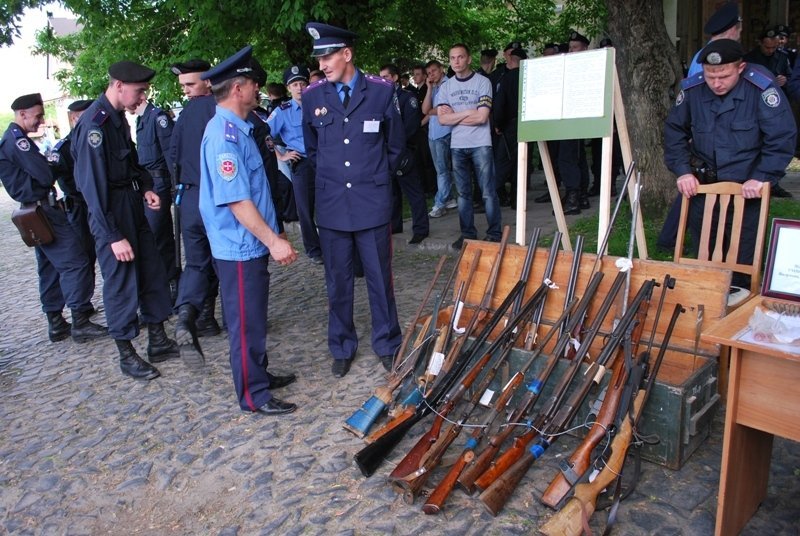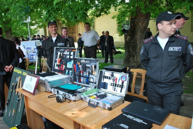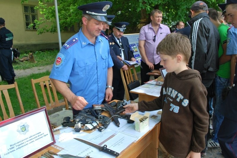 Люди, які побували пообіді 21 травня на Замковій площі мали змогу подивитися на зброю міліціонерів, засоби охоронно-пожежної сигналізації, на екіпіровку спецпідрозділів УМВС.