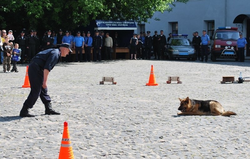 Свою роботу демонстрували працівники кінологічного центру. Собака Джесі під наглядом кінолога виконувала команди.