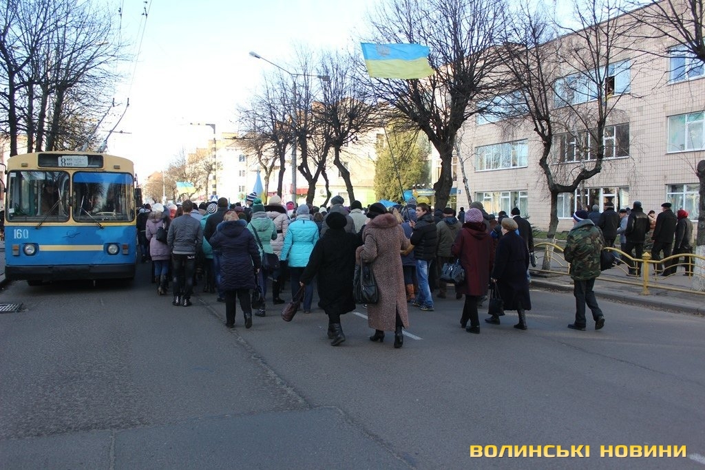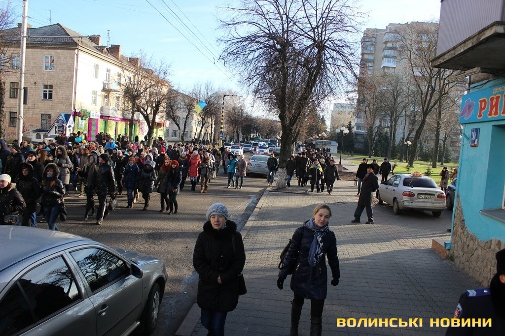 Люди проголосували за звернення до депутатів Волинської обласної ради і центральних органів влади, в якому вимагають відставки центральних та місцевих органів влади. Оргкомітет луцького Євромайдану напише відповідне звернення і відравить депутатам облради на сесію, яка має відбутись завтра, 4 грудня.