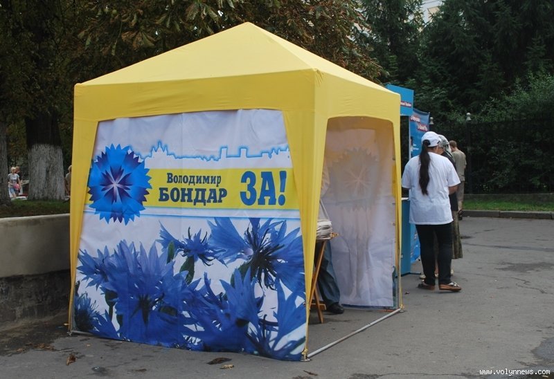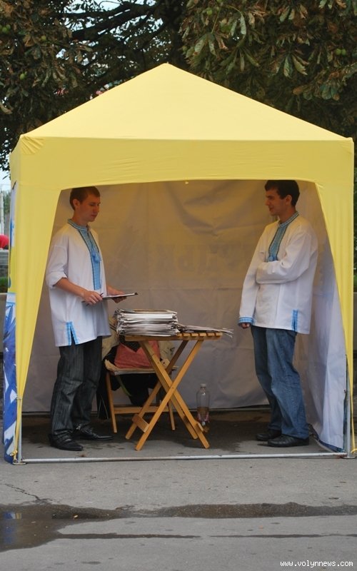 Вже третій день поспіль в Луцьку діє наметова кампанія громадського об’єднання «Луцьк – наш дім». Члени цього об’єднання працюють у 10 наметах, на яких зображені волошки, у різних куточках міста і знайомлять лучан зі своєю діяльністю.