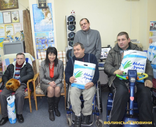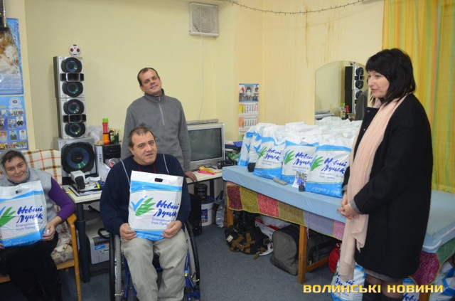 Своєю чергою, заступник голови правління благодійного фонду Ірина Констанкевич привітала присутніх з Міжнародним днем інвалідів: «Ми розуміємо, що ці продуктові набори – невелика лепта на тлі витрат на ліки, проте це вияв уваги та поваги до вас. Коли девальвуються і нівелюються інші цінності, то людське спілкування і людська підтримка – найголовніше. Ігор Петрович Палиця і надалі виділятиме кошти на соціальні потреби, реалізацію програми «З добром у серці» через роботу громадської приймальні, допомогу людям з особливими потребами, малозабезпеченим, лучанам похилого віку. Тому звертайтеся, раді будемо вас підтримати. Ми отримали звернення від десяти організацій і закупили 500 продуктових наборів до Міжнародного дня інвалідів. Загалом же на реалізацію програми «З добром у серці», що передбачає втілення соціальних проектів, витрачено за рік понад 2 мільйони гривень».