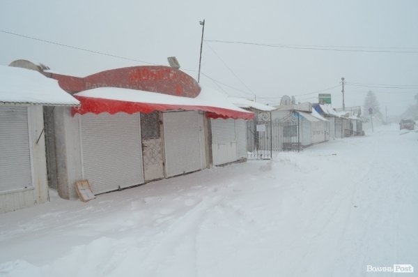 Варто відзначити, що наразі Центральний та Завокзальний ринки Луцька фактично не працюють. Майже всі продавці завершили роботу ще до обіду через снігопад, який з перервами засипає обласний центр понад добу. А багато торговців навіть не прийшли на роботу. На 14:40 на Центральному ринку залишилося кілька продавців у контейнерах та закритих павільйонах.