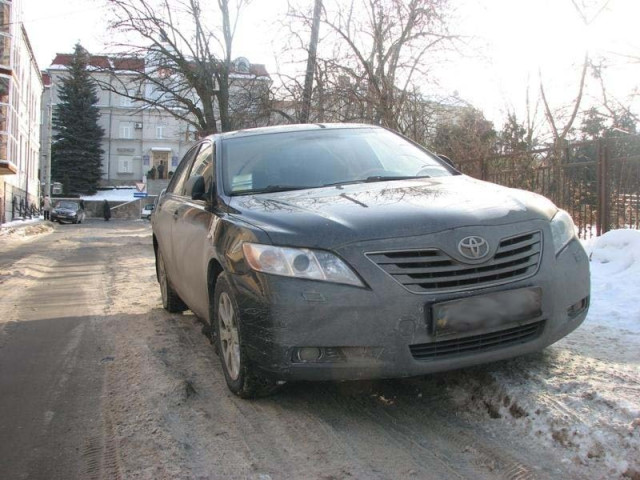 Депутат Андрій Козюра на сесію біг зі стосом паперів – запізнювався. Автівці не вистачило місця на парковці біля міськради – він припаркував її у провулку неподалік. Козюра каже, що ця Toyota Camry – не власна, а орендована.