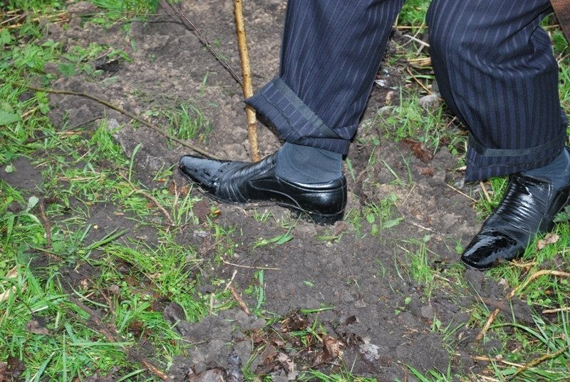 Десь роздавали рукавиці, але чиновники та міліціонери Луцька не пошкодували ні взуття, ані рук. Меншість з рукавицями, більшість – без, у новому взутті, або у «змінці» взяли лопати в руки і посадили березу, червоний дуб, вільху, ясен та клен.