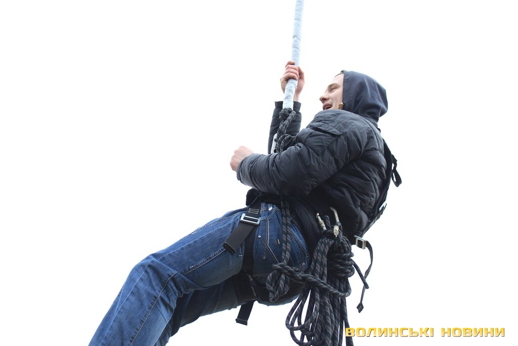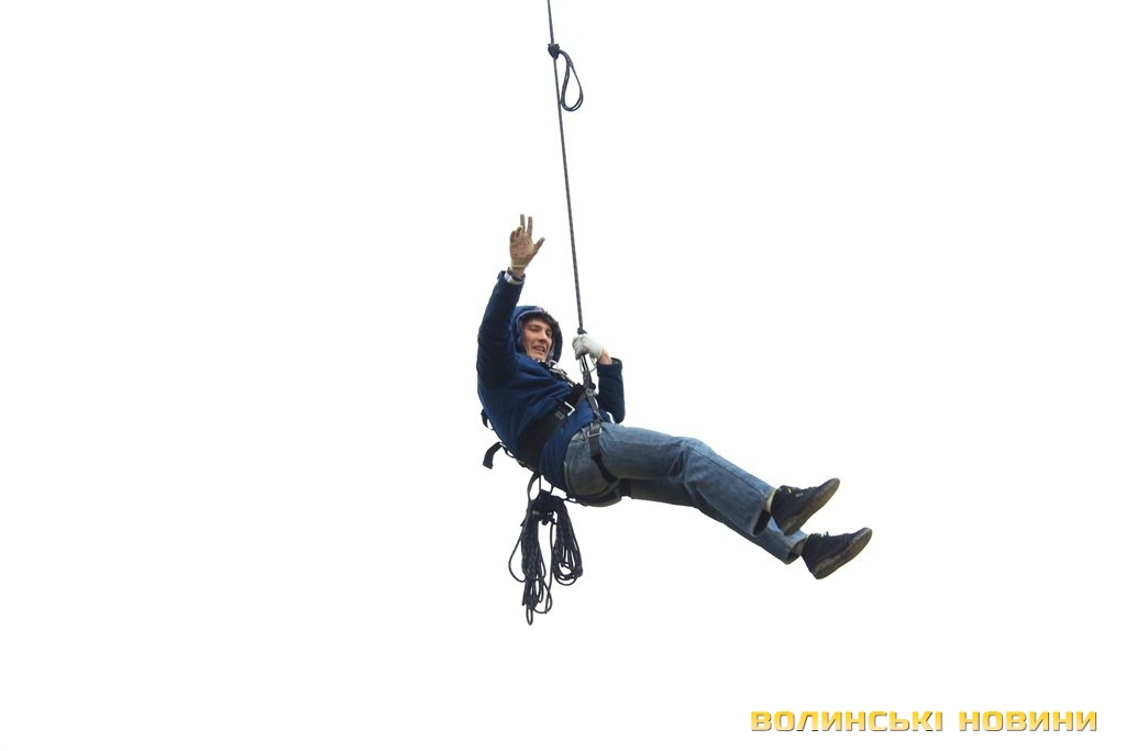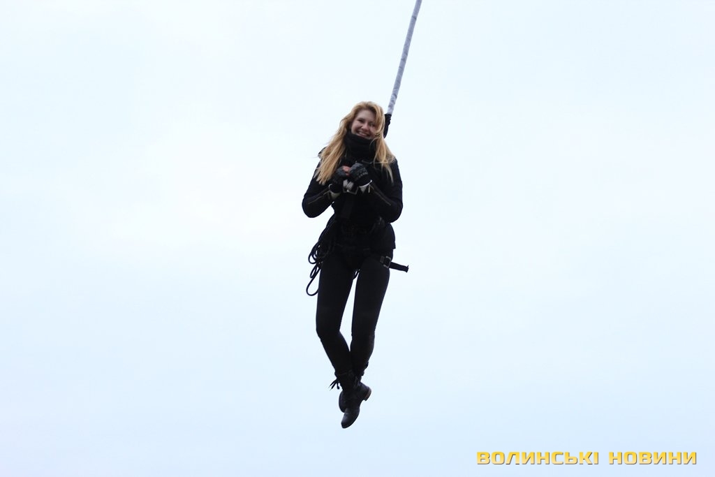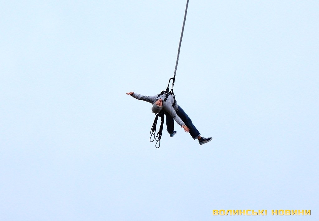 «Загалом, раніше серед екстремальних речей, що я робив, були лише лижі та віндсерфінг. А тепер спробував і стрибнути. Знаєш, я, після того, як приземлився, поїхав до кафе перекусити. Там я довго думав і геть переосмислив власне життя й погляди на нього. І цей процес розпочався уже нагорі», - поділився враженнями з організаторами іноземець.Окрім Рона, стрибнути з 50-метрової висоти прийшли й лучани, серед яких були й уже «бувалі» джампери, й новенькі. Традиційно за адреналіном до обласного центру прибули й гості з Києва, Рівного, Тернополя, Львова, Івано-Франківська , Чернівців та Червонограду.Незважаючи на вітряну та холодну погоду, стрибки організаторам довелось проводити два дні, оскільки від бажаючих «завершити сезон» не було відбою. Підкорити гравітацію лучани приходили відразу з мітингу, тож з криками: «Слава України!» стрімголов кидалися униз і поверталися знову на Євромайдан, куди згодом підтримати українців поїхав й іноземний гість.«Ми в жодному разі не пропагуємо якусь політичну чи соціальну позицію серед екстремалів, утім власну також маємо. У нас до стрибків допускають усіх тверезих та адекватних, не запитуючи про ідеологію та громадську позицію. Але подивіться, наразі тут знаходяться люди, які, схоже, дуже люблять Україну», - розповіла одна із організаторів заходу Вікторія Семенюк.