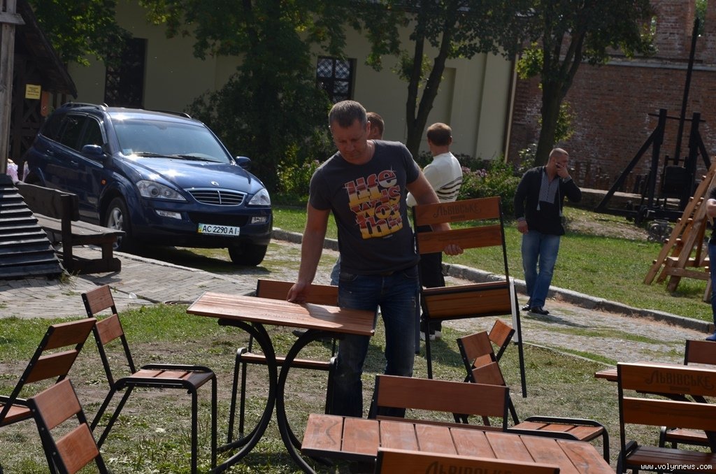 На території ж замку триває підготовка до фестивалю. Готуються бармени, офіціанти готують каву, організатори розставляють столи, музиканти проводять саунд-чеки.