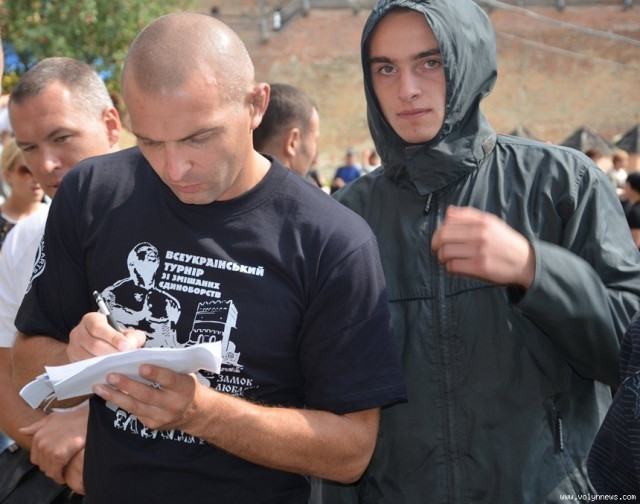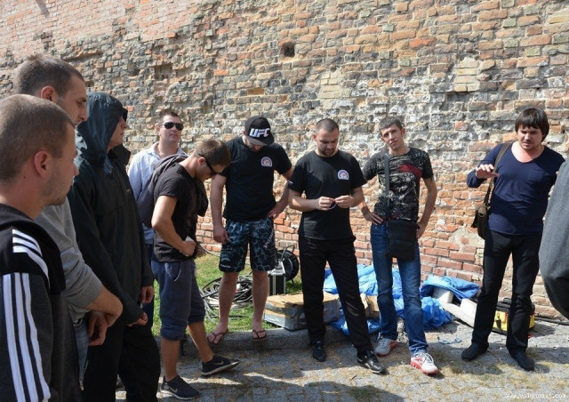 Гуляють замком і гості з Києва – бійці Андрій Безверхий та Овакимиян Мамука. Обидва живуть і тренуються в столиці. Мамука – уродженець Грузії. Кажуть, тренування відвідують майже щодня. Витрачають на те багато часу і зусиль. Овакимиян займається боями з 2005-ого року, Андрій – лиш півтора. Спортсмени брали участь у міжнародних та всеукраїнських змаганнях. Мамука, зокрема, - призер світового чемпіонату із бойового самбо.
