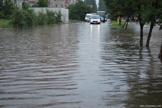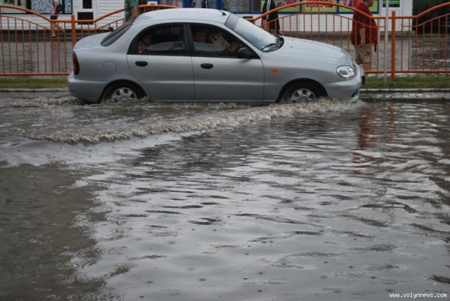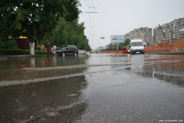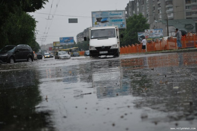 Дощ паралізував рух вулицями Луцька. ФОТО