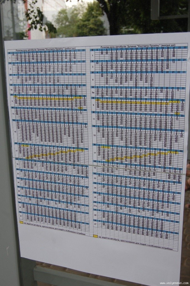 Загалом же, «Волинські новини» знайшли лише 4 інформаційні листівки із вказанням руху громадського транспорту на 9-ти «маршрутних» зупинках. Так, не було їх на двох зупинках на вулиці Рівненська, на проспекті Волі поблизу школи-гімназії №4, на двох зупинках на вулиці Винниченка.