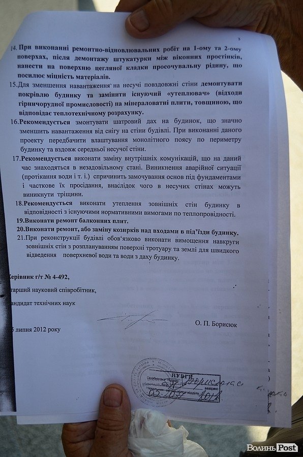 У висновках ‒ рекомендації щодо того, як і де варто ремонтувати і укріплювати будинок.