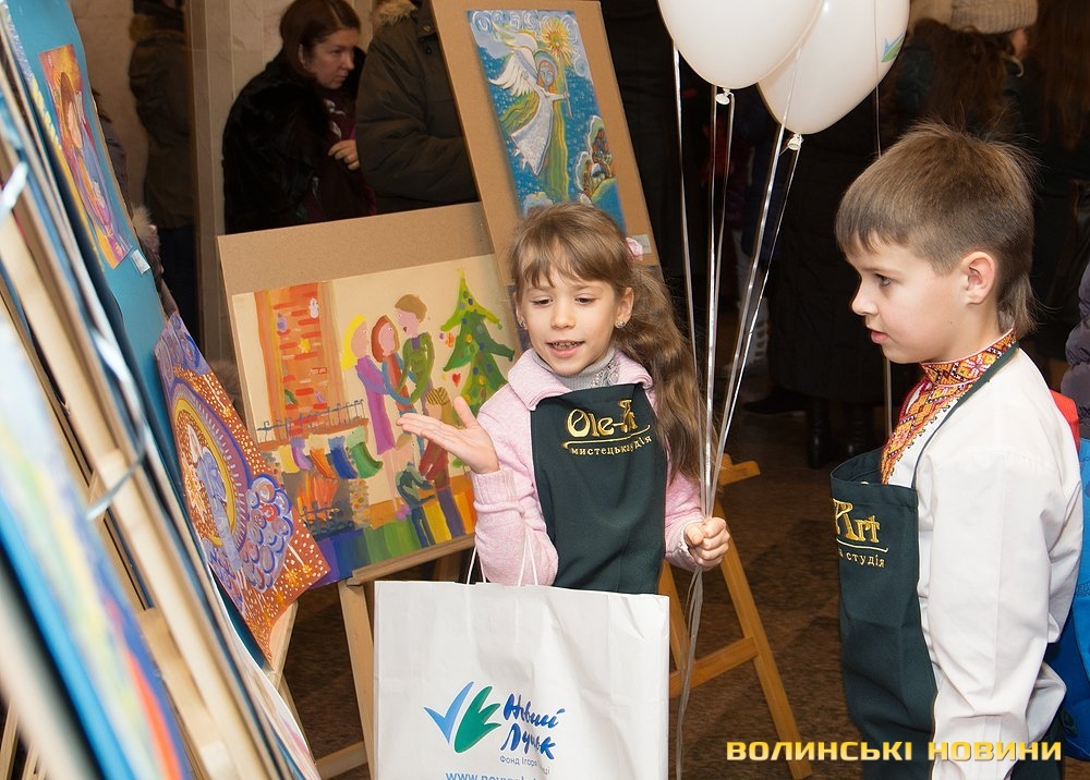 У фойє Палацу культури міста всі гості свята могли побачити виставку яскравих дитячих робіт. Їхні автори – учасники мистецького проекту «Намалюю любов до життя», започаткованого 2012року мистецькою студією «Оле-арт», яка теж знайшла підтримку благодійного фонду «Фонд Ігоря Палиці – Новий Луцьк». Головним завданням проекту є наповнювати змістом дозвілля дітей з особливими потребами, дати можливість відкрити себе у творчості, додати яскравих фарб у палітру свого життя. Учасники проекту «Намалюю любов до життя» – діти з трьох громадських організацій : «Волинська обласна громадська організація «Асоціація «Оберіг Мистецтва», ВОМ центр реабілітації інвалідів з дитинства «Джерело Життя» та студія «Творчість» ВОБФ «Преображення», які займаються в мистецькій студії «Оле-арт». Під час дійства вони отримали в подарунок матеріали, необхідні для занять та солодкі подарунки.