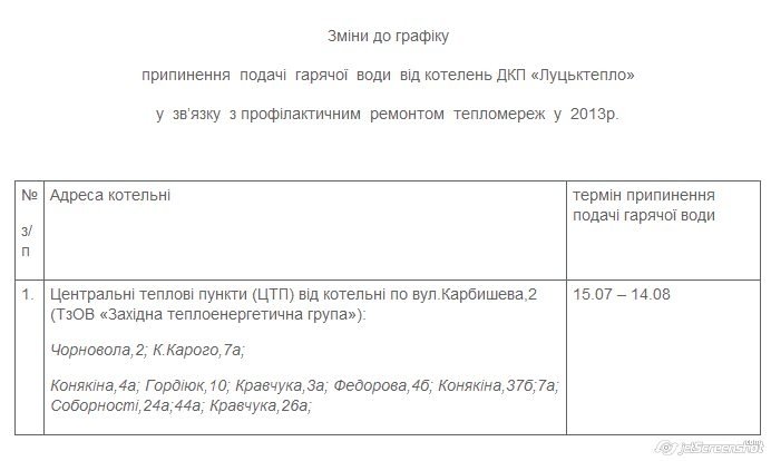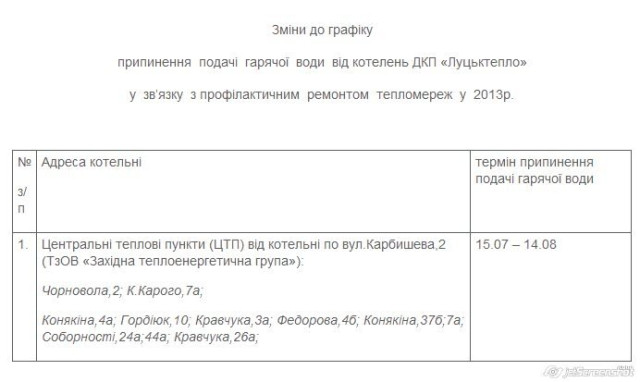 ЧИТАТИ ЩЕ: ГРАФІК припинення подачі гарячої води у Луцьку