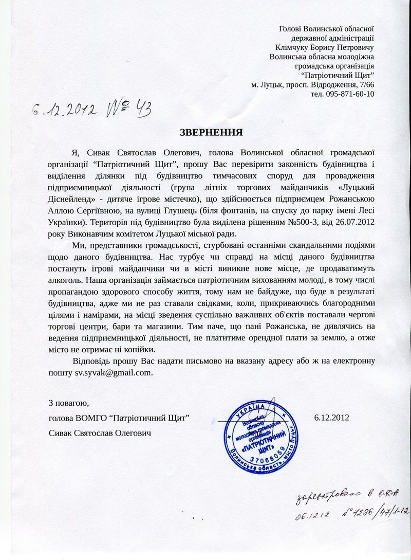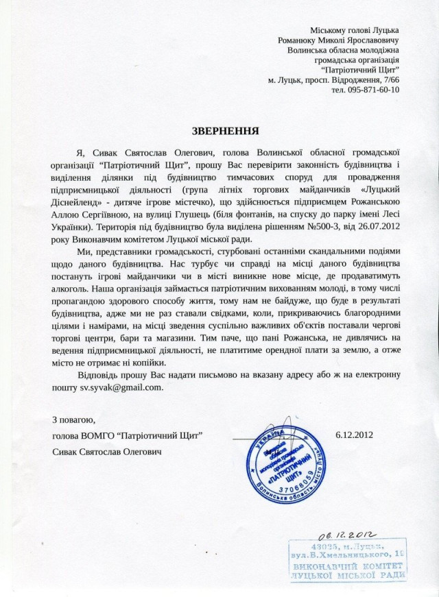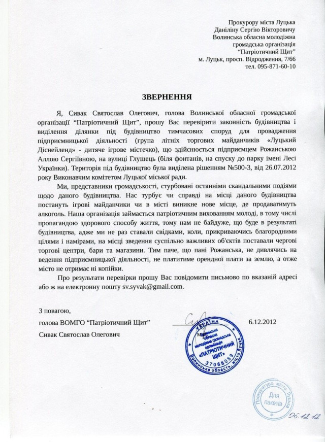 Аналогічні звернення відіслані на адресу мера Луцька Миколи Романюка та міського прокурора Сергія Даніліна.