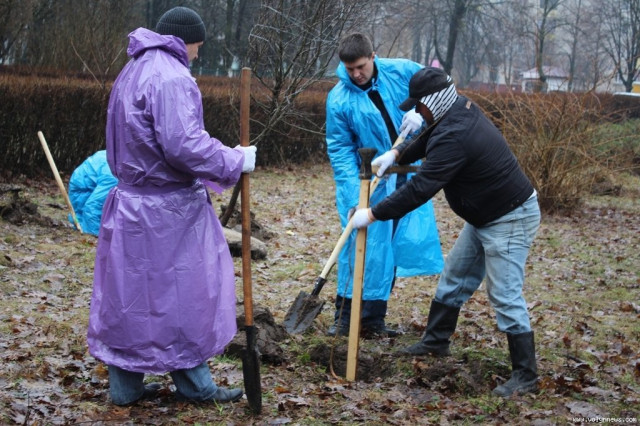 У парку садили дерева. В акції взяли участь працівники Луцької міської ради, «Приватбанку», а також школярі і комунальники.Але де ж вони???Це ж більше 100 чоловік,а враження що всі